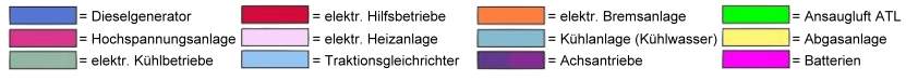 Die Leistungerzeugung erfolgt in der Regel durch den 16 Zylinder 4 Takt Dieselmotor(DM) mit Direkteinspritzung mit Pumpe - Düse Technik. Dieser hat 4 Ventile pro Zylinder mit hydraulischen Ventilspielausgleich. Jeder Zylinder kann einzeln über die Einspritzdüsen abgeschaltet werden (mechanisch). Die Leerlaufdrehzahl des DM liegt bei 330 - 350 U/min, die Höchstdrehzahl bei 1000 U/min. Besonderheit des DM ist seine Kühlwasserummantelte Abgasleiste. Die Leistung des DM beträgt im Normalfall 2230 KW. Der Dieselmotor ist mit dem Traktionsgenerator (Drehstrom) auf einem Tragrahmen befestigt. Der Traktionsgenerator ist ein 2x 3~ Wechselstromgenerator (2 Drei-Phasen-Sterne als Ständerwicklung) und erzeugt eine Leistung von 2150 KW. Die Traktionsleistung beträgt im Normalfall 1850 KW.